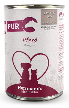 Con la nostra linea Pure di KREATIV-MIX puntiamo al 100% di carne, sempre composta da carne di muscolo di cavallo magra.
