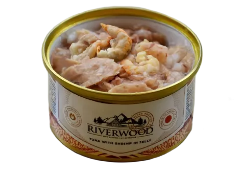 Riverwood per gatti ha una deliziosa formula con ben il 51% di tonno e il 6% di gamberetti in gelatina. Il cibo è preparato artigianalmente e cotto a vapore con cura, rendendolo irresistibilmente delizioso!